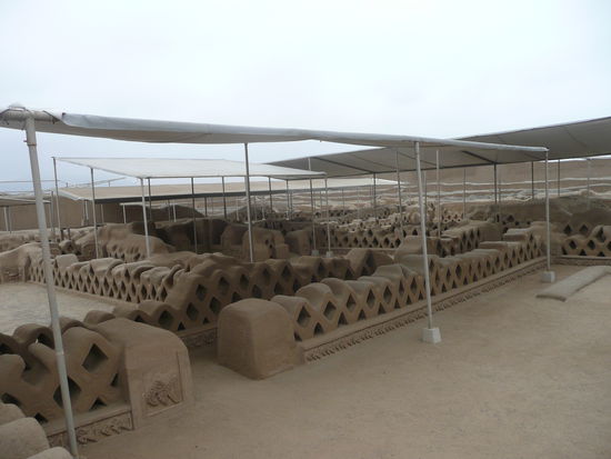 am naechsten tag kam der kulturelle grund an die reihe wieso ich in huanchaco bin. mit dem bus ging es zur ersten station und zwar die ruinen von chan chan... chan chan wurde um 1300 gebaut und muss einst ein strahlender ort gewesen sein. die chimu-hauptstadt umfasste neun bezirke. diese staette war einmal die groesste praekolumbische stadt in amerika und die groesste lehmziegelstadt der welt.