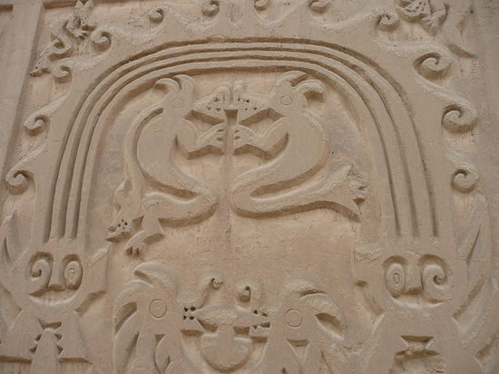 nachdem wir chan chan besichtigt haben, ging es auf unserem rundgang weiter zur la huaca arco iris. der name dieser chimu-staette bedeutet regenbogentempel und wird auch huaca del dragon genannt. dieser tempel ist einer der am besten erhaltenen chimu-tempel denn er war bis in die 1960er jahre von sand bedeckt. er diente als staette fuer fruchtbarkeitsrituale und kinderopfer.