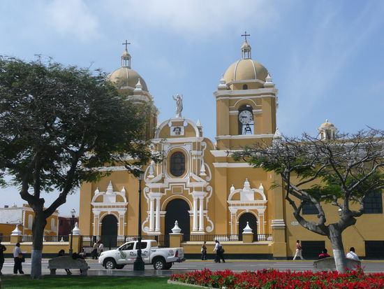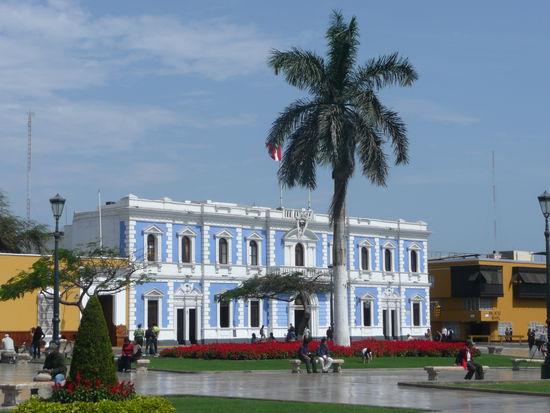 nach diesen 3 chimu-staetten knurrte unser magen und wir machten uns auf der suche nach einem restaurant ins zentrum von trujillo. nach dem wir im sal y pimienta lecker gespiesen haben, haben wir uns den beruehmten plaza de armas angeschaut. wirklich ein toller platz umringt von alten kolonialhaeusern und einer wunderschoenen kirche.