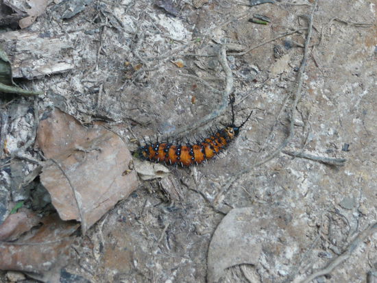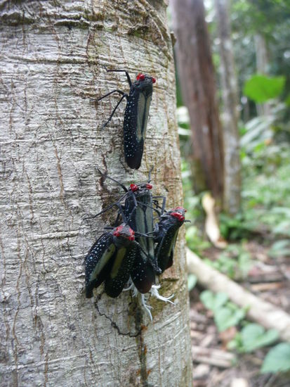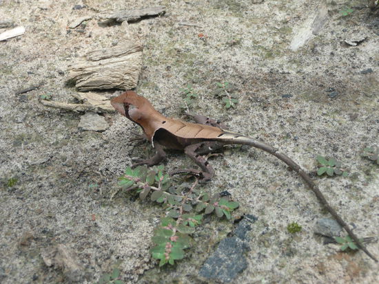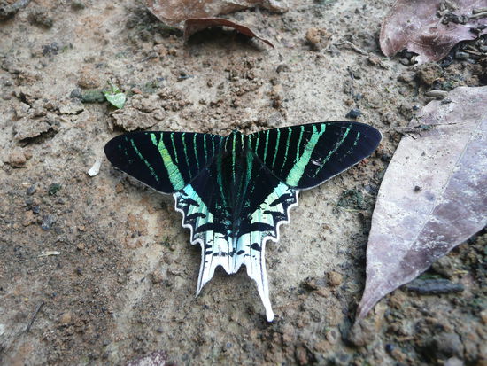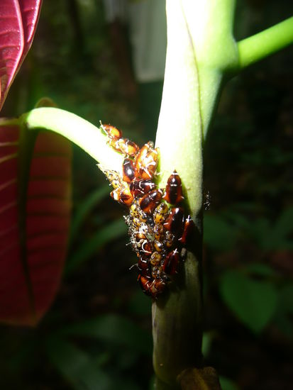 dann kam natuerlich wieder mal ich an die reihe ich habe 3 sachen entdeckt... erstens eine suesse kleine schwarze baby schlange die kaum 10cm lang war. voller freude habe ich sie unserem guide gezeigt und er hat nur einen schreck gekriegt und gesagt, dies sei die giftigste schlange die durch den urwald kriecht... hmm aber die war ech suess .