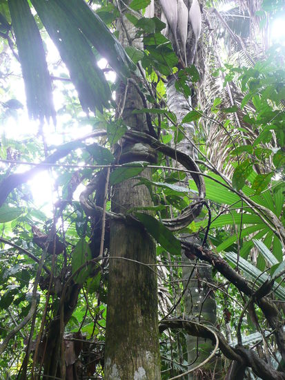 die dschungelwanderung die wir unternommen haben war auch sehr spannend und wir haben viel ueber pflanzen und ihre heilkunst gelernt. zum beispiel hat er uns einen baum gezeigt mit dem man sich die beine waxen kann. man laesst die harzige fluessigkeit 8 tage auf den beinen und reisst sie dann weg. anscheinend kriegt man nie wieder haare an dieser stelle. er meinte auch dies sei gut fuer die bikinizone... hmm 8 tage mit wachs zwischen den beinen... ich weiss nicht recht .