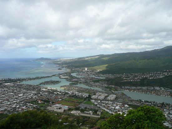 am zweiten tag bin ich zuerst auf die suche nach einem kleinen, guenstigen notebook da die internetcafes doch ziemlich teuer sind. und ich habe eines gefunden ;o). nach meiner errungenschaft bin ich dann mit dem bus bis zum fuss vom diamond head gefahren und habe mit dem aufstieg begonnen. am anfang sah das ganze ja ziemlich easy aus aber am schluss musste man unglaublich steile treppen hoch somit war ich doch ziemlich kaputt als ich oben ankam. der diamond head ist ein erloschener (hoffte ich wenigstens als ich oben war) vulkan von wo aus man einen tollen blick auf honolulu und den waikiki beach hat.
