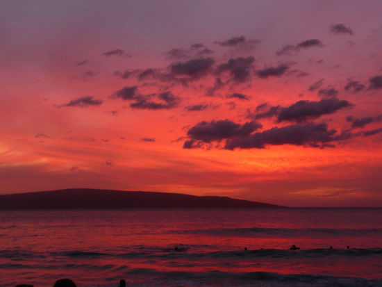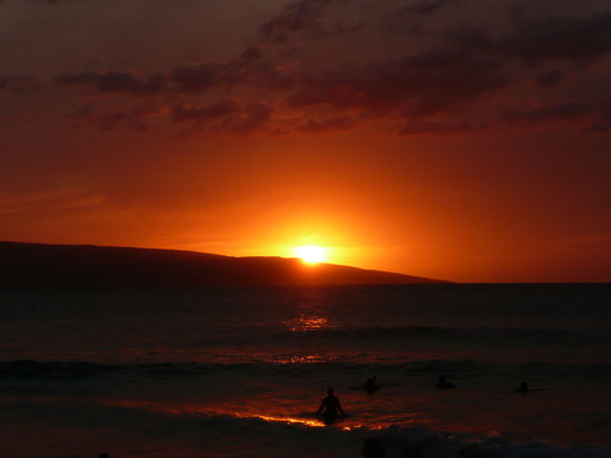ja die erste gratis tour hiess makena beach sunset party. wir fuhren mit dem bus zum big beach in makena und haben den ganzen nachmittag mit faulenzen, volleyball spielen und baden verbracht. war so richtig gemuetlich. gegen abend wechselten wir zum little beach dort wird an jedem sonntag der letzte sonnenuntergang der woche gefeiert mit trommeln und feuershows. die atmosphaere ist toll und es hat viele verrueckte leute da. der strand war gestossen voll und man musste echt suchen bis man einen platz fuer sein badetuch gefunden hat.