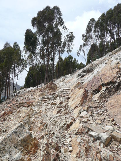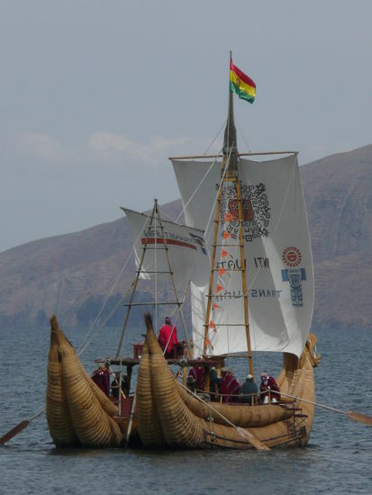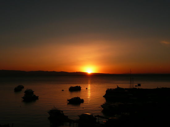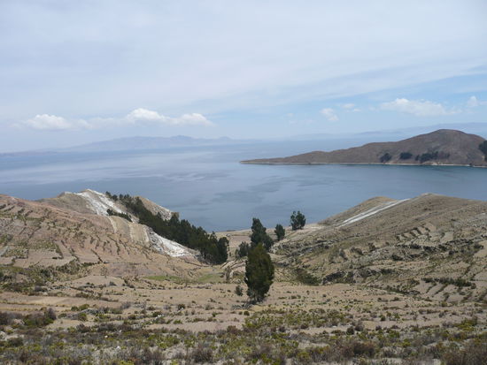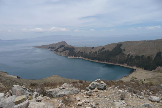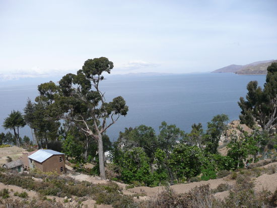 bevor ich ueber copacabana schreibe moechte ich euch noch etwas ueber den titicacasee erzaehlen. der see liegt auf 3820m und hat eine laenge von ueber 230 km und eine breite von 97 km. viele behaupten, dass er der hoechste schiffbare see der welt sei, jedoch gibt es seen in chile und peru die hoeher sind. er bildet die grenze zwischen peru und bolivien und ist ein ueberrest des lago ballivian, eines uralten binnenmeers. der see schimmert saphirblau und die gegend ist einfach wunderschoen!