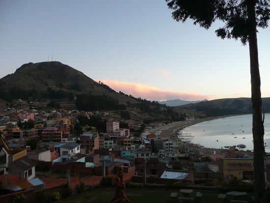 copacabana liegt am suedufer des titicacasees und ist eine kleine, bunte stadt. es ist schoen durch seine strassen zu schlendern mit seinen vielen gemuetlichen cafes, oder an der strandprommenade zu sitzen und einen wunderschoenen sonnenuntergang geniessen. copacabana bietet nicht viel aber es ist ein ort um abzuschalten. die riesige kathedrale, die im maurischen stil gebaut wurde praegt das stadtbild und ist wirklich ein besuch wert!