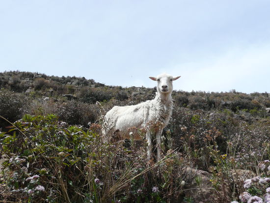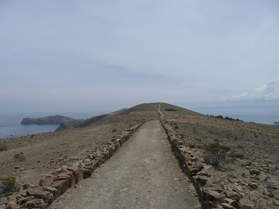 wir wurden am nordende der insel rausgelassen und begaben uns auf eine 4 stuendige wanderung bis zum suedende. der weg fuehrte uns steile, steinige haenge hoch bis wir auf einem richtigen weg den grat entlang wandern konnten. die landschaft ist sehr trocken und rauh aber die aussicht war fantastisch! es duftete nach eukalyptusbaeumen und die kuestenlandschaft und buchten waren sehr spektakulaer. es gibt auch hier einzelne, zerfallene inkaruinen die wir jedoch nicht besichtigt haben. die wanderung war unglaublich schoen und die insel ein schmuckstueck!