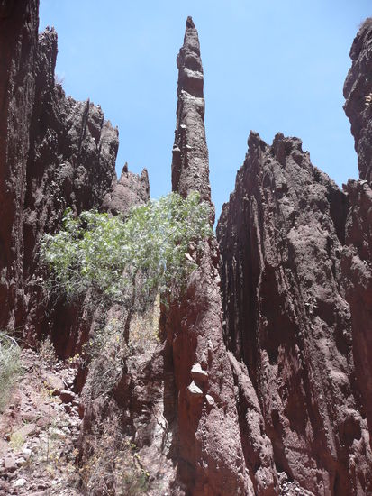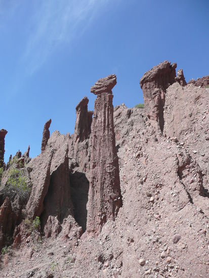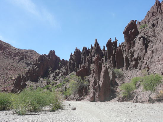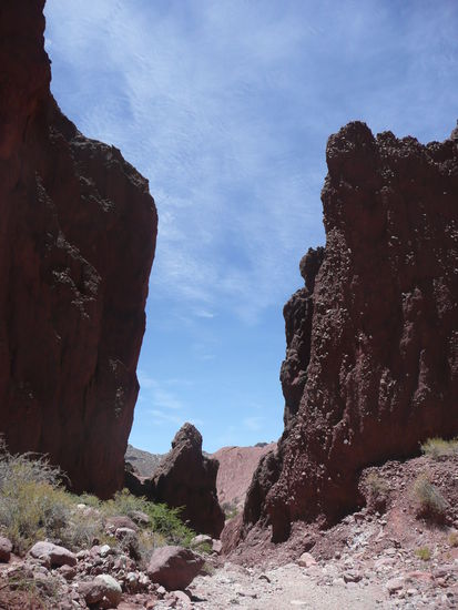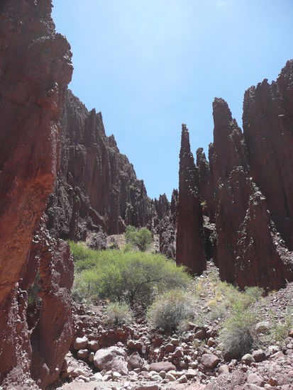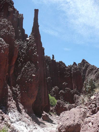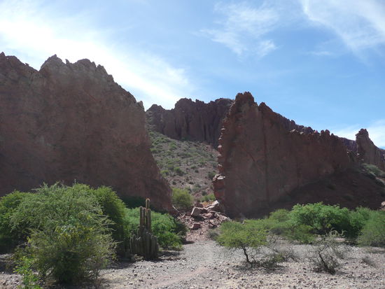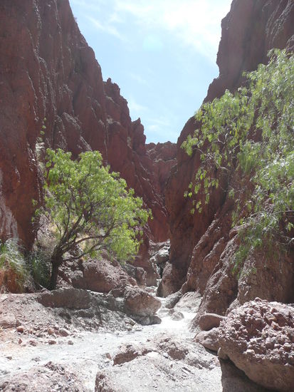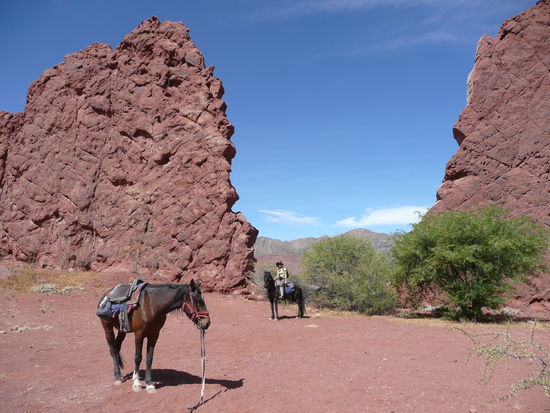 ich ritt einen wunderschoenen schwarzen wallach, leider habe ich den namen bereits vergessen, der ganz schoen fit war. im schritt und im vollen galopp naeherten wir uns den los canones. wow bereits der eingang des canyons war eindruecklich und was ich innen vorgefunden habe war einfach traumhaft. bizzarre felsformationen, baeume und kakteen zierten die schlucht. ich glaube ich haette noch ewig auf entdeckungstour gehen koennen. der valle de los machos traegt seinen namen aus gutem grund. mehr moechte ich nicht erzaehlen denn auf den fotos ist es bestimmt deutlich genug . der canon del inca ist eine weitere enge schlucht die einlaedt den von felsen versperrte weg zu erforschen. nach der puerta del diablo die eine riesige oeffung zwischen 2 felsen darstellt, ging es auch schon wieder zurueck nach tupiza. mein hintern war nicht gerade beleidigt als ich nach 5 stunden vom pferd gestiegen bin ;o).