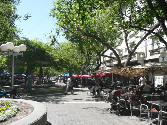 mendoza, eine wunderschoene moderne stadt mir rund 110000 einwohner. 1861 zerstoerte ein erdbeben die gesamte stadt. die behoerden bereiteten sich danach auf das naechste erdbeben vor, indem sie beim wiederaufbau breite von baeumen gesaeumte strassen und weitlaeufige plazas angelegt haben. die breiten strassen sollen die gebaeude voreinander schuetzen und es ist einfach wunderschoen durch diese stadt zu schlendern. die umgebung von mendoza ist auch gesegnet mit den besten weinbergen den landes. 70% aller weine des landes kommen aus dieser gegend.