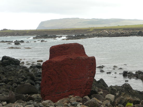 ahu te pito kura liegt in einer kleinen fischerbucht der bahia la perouse. dieser 10m grosse moai liegt mit dem gesicht nach unten auf der erde und hat sagenhafte 2m lange ohren. benannt ist dieser ahu nach einem runden stein, der den namen te pito kura traegt. dieser name bedeutet der nabel der welt. man sagt, dass dieser stein magische kraefte besitzt. wissenschaftler haben herausgefunden, dass dieser stein auf mysterioese weise magnetisch ist. natuerlich mussten auch wir diesen stein anfassen. mal sehen was jetzt mit uns passiert .