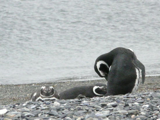 am naechsten tag machte ich einen ausflug um endlich meine erste pinguin kolonie zu bewundern. mit dem bus fuhren wir (10 andere pinguin touristen) 1.5 stunden durch eine malerische umgebung bis zu einem klitze kleinen dorf. dort stiegen wir in ein boot um und nach weiteren 15min gelangten wir auf eine insel. schon von weitem konnte man die unglaublich vielen pinguine herumwatscheln sehen. die sind ja wirklich suess und sie laufen so lustig . auf der insel durften wir uns nur sehr langsam bewegen damit wir sie nicht aufschrecken. wir konnten uns bis 3m an sie heran pirschen und tolle fotos machen. uns wurde alles ueber die pinguine erklaert und wir spazierten ueber die insel um die pinguine beim nesten zu beobachten. auf dieser insel gab es 2 verschiedene arten von pinguinen. die einte art nestet auf der erde, die andere in hoehlen. war sehr spannend zu beobachten. mir hat dieser ausflug wirklich gefallen auch wenn es mit dem staendig blasenden wind echt kalt war.