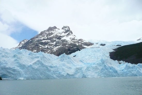 die fahrt ging weiter zum "glaciar spegazzini". dieser gletscher ist um einiges kleiner als der upsala denn seine oberflaeche betraegt nur 66 quadrat km. er weist eine laenge von 25 km auf und die front ist 1.5 km breit. was diesen gletscher zu etwas ganz besonderem macht ist seine hoehe. die betraegt sagenhafte 80 bis 125 m. somit ist er der hoechste gletscher im nationalpark. gewaltig wie klein man sich auf einem doch ziemlich grossen boot vorkommen kann. hier konnten wir auch die ersten eisabbrueche beobachten.