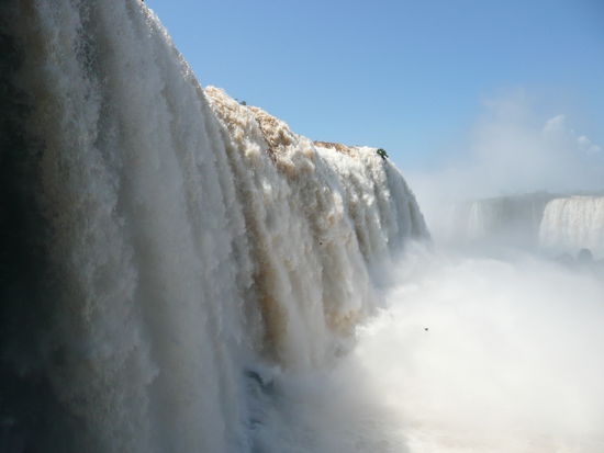 wasserfaelle so meinen manche, sollen negative ionen und damit gluecksgefuehle erzeugen. ihr glaubt das nicht? dann ab zu den iguazu faellen. ich habe in meinem leben noch nie etwas so schoenes gesehn. die kraft die diese wasserfaelle ausstrahlen, die groesse und die enorme geraeuschkulisse ist unbeschreiblich. man kommt aus dem staunen nicht mehr heraus und trotz den vielen touristen koennte man stundenlang einfach nur dastehen und dieses naturschauspiel bewundern.