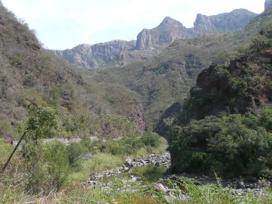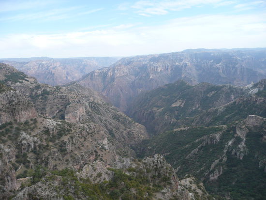 aber zurueck zur zugsfahrt. die ersten 3 stunden sind nicht sehr interessant da man durch flaches ziemlich oedes gelaende faehrt aber man kann einen wunderschoenen sonnenaufgang bewundern. nach diesen 3 stunden faengt der copper canyon an und der zug windet sich durch schluchten, ueber bruecken und durch tunnels. die gegend ist einfach atemberaubend denn der zug faehrt an einem bach entlang und man kann viele verschiedene felsformationen und waelder betrachten. gegen nachmittag haelt der zug fuer ca. 15min in einem kleinen ort mit ganz vielen kleinen marktstaenden und man kann von dort aus die tiefsten schluchten des copper canyon bestaunen. der copper canyon ist tiefer als der grand canyon. sobald es jedoch dunkel wird, wird es langweilig im zug und man hofft nur noch endlich anzukommen ;o). es hat sich unglaublich gelohnt diese fahrt zu machen und es heisst zurecht die fahrt durch den copper canyon sei eine der schoensten der welt!