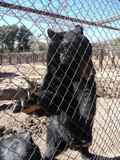 phu endlich morgen ;o). nach dem fruehstueck an der sonne haben wir uns auf den weg zu einer ranch gemacht in der alejandro eine zeitlang gearbeitet hat. er wollte mir diese ranch unbedingt zeigen denn die sei etwas ganz besonderes. oh ja das war sie! diese ranch war einfach wunderschoen von der landschaft her und von der vielfalt der tiere. ich kam mir vor wie auf einer safari denn wir konnten schwarzbearen, bisons, woelfe, pferde und elche (bin mir nicht sicher ob das wirklich elche waren ;o)) beobachten.