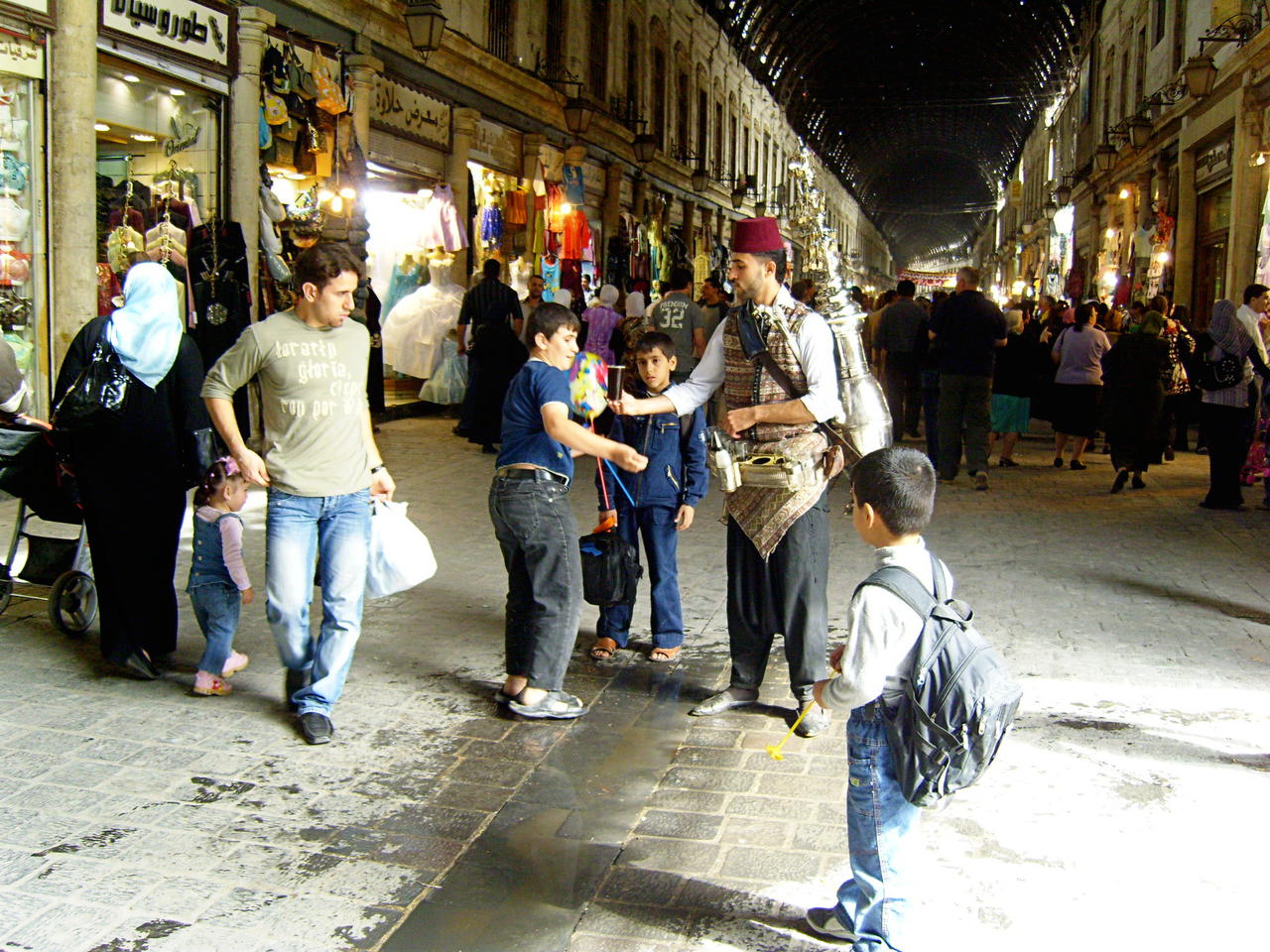 Am letzten Tag besichtigen wir noch den Basar in Damaskus und die Omayaden-Moschee, wo jede Frau einen netten Sommermantel bekommt. Die Moschee ist jedenfalls überwältigend und der Basar um die Moschee eine Augenweide für alle Sinne.