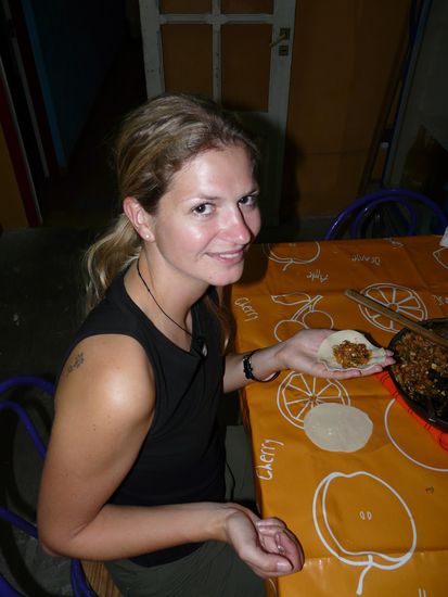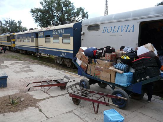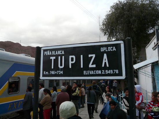 Am naechsten Tag ging es dann auf ins Abenteuer! Auf nach Bolivien! In den Internet-Foren liest man oft negative Sachen, allein schon ueber die schwierige Einreise nach Bolivien. Dem koennen wir nicht zustimmen! Eingereist sind wir ueber den Grenzuebergang La Quiaca-Villazon. Gut innerhalb von sechs Stunden mit dem Bus von Salta aus zu erreichen. Da wir auf 3.400 m waren, war es aufgrund des fehlenden Sauerstoffs lediglich etwas anstrengend mit den schweren Rucksaecken die Grenze zu passieren. Direkt am Busbahnhof haben wir Astra und Josh aus Kanada und Australien kennengelernt, deren Rucksack in Buenos Aires gestohlen wurde (inkl. Reisefuehrer). Sie waren ein wenig hilfslos, und wir haben sie adoptiert. Anschliessend sind wir sofort zum Bahnhof gegangen, da man keine Tickets fuer den Zug reservieren kann und der Schalter schliesst, wenn das letzte Ticket verkauft wird. Der Zug bis Oruro faehrt sechs mal die Woche um 15:30 Uhr. Der Grenzort hatte fuer uns asiatischen Charme, den wir sehr lange vermisst haben. Alles war etwas chaotisch und schmuddeliger (positiv gemeint) als in Argentinien. Die Bolivianer waren sehr offen und freundlich und laecheln wesentlich mehr als ihre Nachbarn. Der Zug war auch ein Highlight. Schon ein wenig in die Jahre gekommen, aber sehr sauber. Das erste Klasse-Ticket nach Tupiza (3 Std.) hat ca. 7 € gekostet und es gab sogar einen Speisewagen und Unterhaltung via TV. In Tupiza angekommen wurden wir mit offenen Armen empfangen und waren sehr ueberrascht, dass die Einheimischen bereit waren, mit uns Englisch zu sprechen. Zu Fuss wurden wir von einer Mitarbeiterin unseres Hostels am Bahnhof abgeholt und zum Hostel geleitet.