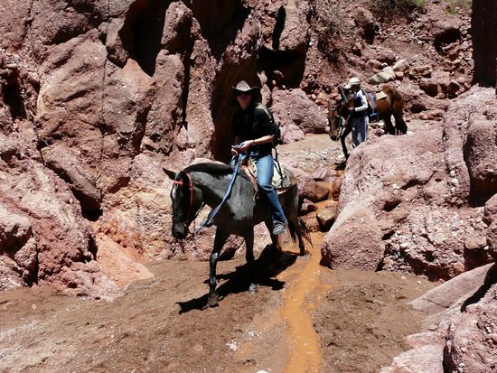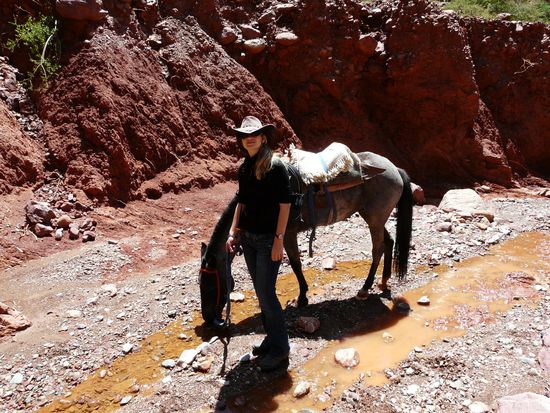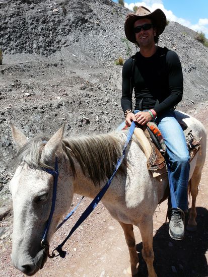 Am naechsten Morgen haben wir nach einem ueberraschend gutem Fruehstueck (es gab Joghurt und Obst) einen fuenfstuendigen Ausritt in die bezaubernde Landschaft Tupizas gemacht. Eigentlich wollten wir eine siebenstuendige Tour machen, die aber leider nicht verfuegbar war. Leider, haha...keiner von uns konnte reiten und schon nach zwei Stunden tat uns der Hintern tierisch weh. Wir haben am naechsten Tag noch fuer unseren Hochmut buessen muessen. Niemand wusste, wie er sitzen sollte und alle hatten Rueckenschmerzen. Dennoch war der Ausritt durch verschiedene einsame Canyons und unberuehrte Natur wunderschoen.