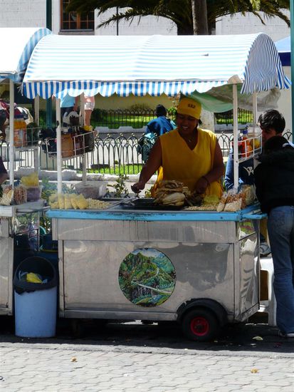 Latacunga liegt im Andenhochland von Ecuador auf 2.760 m. Sie ist Hauptstadt der Provinz Cotopaxi und hat 57.127 Einwohner. Touristen besuchen diesen Ort hauptsaechlich, da der Vulkan Cotapaxi gut zu erreichen ist, und man aus dem Ort bei gutem Wetter sechs Vulkane sehen und besuchen kann. Uns war das leider nicht gegoennt, da die Gipfel der Vulkane waehrend unseres Aufenthalts in den Wolken lagen. Geschlafen haben wir im Hotel Estambul. Es ist eines der besten Haeuser am Platz und seit 1949 geoeffnet. Das Mobiliar stammte ausschliesslich aus dem Gruendungsjahr, und wir waren mal wieder die einzigen Gaeste. Das Hotel ist guenstig, sauber und die Besitzerfamilie sehr freundlich.