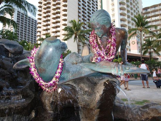 Wir sind in Honolulu auf Oahu, der Insel, auf der die meisten Hawaiianer leben, gelandet. Da wir insgesamt nur vier Naechte auf Hawaii verbringen wollten, sind wir vom Flughafen aus nach Waikiki Beach gefahren. Der Wechsel auf eine andere Insel lohnte sich fuer ein paar Tage nicht.