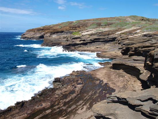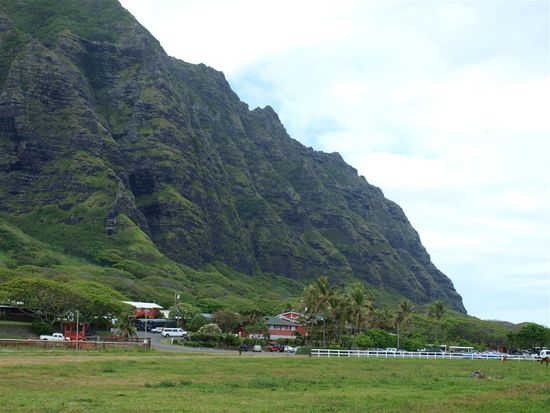 An der Kueste entlang sind wir zur beruehmten Northshore gefahren. Die Kuestenstrasse, die Ausblicke und die Straende waren beeindruckend. Von der Northshore waren wir etwas enttaeuscht. Im Winter gibt es hier bis zu 10 Meter hohe Wellen und wir haben wenigstens halb so hohe erwartet. Das Meer war leider spiegelglatt, die Orte aber sehr nett und entspannt. Sollten wir jemals nach Oahu zurueckkehren, waere die Northshore der beste Platz.