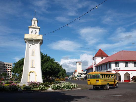 Samoa war von 1900 bis zum Ausbruch des ersten Weltkriegs eine Kolonie Deutschlands. Die Samoaner sind Deutschland noch heute fuer die Strassen dankbar. Spuren der Kolonialzeit gibt es kaum noch. Ein paar deutsche Namen und einige eindeutig zu weisse Einheimische sind die letzten sichtbaren Ueberbleibsel. Die Brauerei und der Fernsehsender sind noch in deutschen Haenden. Mit dem Ausbruch des ersten Weltkriegs hat Neuseeland Samoa uebernommen und in den 60er Jahren in die Unabhaengigkeit entlassen. Samoa war einer der ersten freien Staaten in der Suedsee.