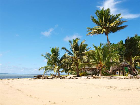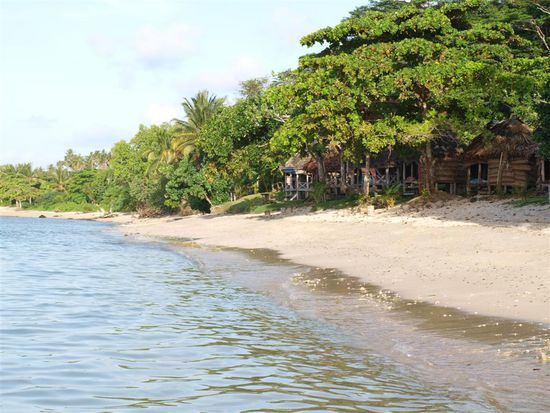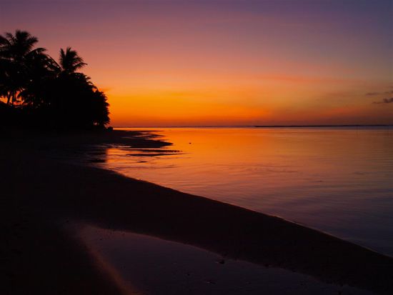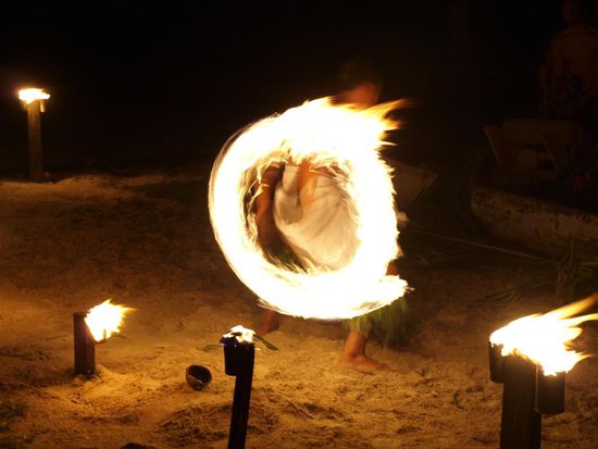 Nach einer weiteren Uebernachtung im Lusias und einer fuer den Magen recht herausfordernden Ueberfahrt, diesmal mit der kleinen und wesentlich schwankenderen Faehre, beschlossen wir, ins Virgin Cove zu fahren. Dort fanden wir den schoensten Strand unserer bisherigen Reise und viele nette Leute. Problematisch war hier lediglich unsere Gartenfale (mitten im Urwald), die leider aufgrund zwei Tage anhaltender Regenfaelle nahezu wegschwamm und nie wieder richtig trocken wurde. Zudem haben wir dort gelernt, warum alle anderen Falen auf Stelzen standen. Wir teilten uns erstmalig unsere Fale mit grossen Einsiedlerkrebsen, Schnecken, Echsen und Geckos. Wir haben uns schnell dran gewoehnt und gefreut, endlich mal wieder ein paar Haustiere zu haben. Am letzten Abend konnten wir eine grosse polynesische Tanz- und Feuershow bewundern. Dies verkuerzte unsere Wartezeit bis zum Abflug in der Nacht erheblich.