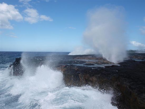 Am naechsten Morgen machten wir per Taxi eine Inselrundfahrt. Besonders beeindruckend waren die Blowholes. Sie liegen direkt an der Kueste, wo das Meer (ohne Schutz durch ein Riff) ungebremst gegen das Ufer schlaegt. Das Wasser schiesst bei Flut durch unterirdische Tunnel bis zu 30 Meter hoch an die Oberflaeche. Weitere Attraktionen waren ein Wasserfall, der Inselmarkt und ein Dorf, das bei einem Vulkanausbruch vor etwa 100 Jahren zerstoert wurde. Geendet hat unsere Tour in Manase. Hier haben wir vier Naechte im Reginas Beachfales verbracht. Dieser Platz gefiel uns besser als die anderen, da es nur wenige Falen gab. Wir haben die Zeit sehr genossen. Viel gelesen und gefaulenzt. Das Angenehmste im Ort war fuer uns Racis Beach Club. Bei den beiden Schweizern gab es leckeren Kaffee, tolle Cocktails und eine der besten Pizzen, die wir jemals gegessen haben. Jeder, der nach Samoa faehrt und Urlaub in einer Fale macht, sollte sich einer Tatsache bewusst sein: Bis auf wenige, meist hoeherpreisige Plaetze gibt es ueberall nur Massenfuetterungen zu festen Uhrzeiten. Kommt man zu spaet, geht man leer aus.