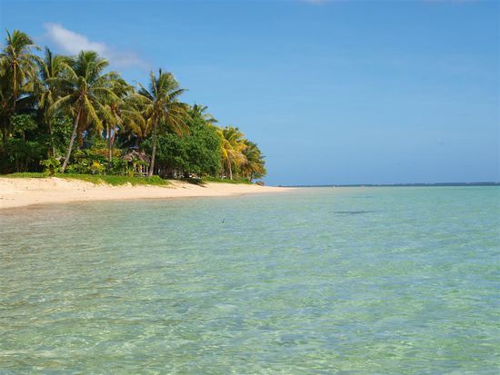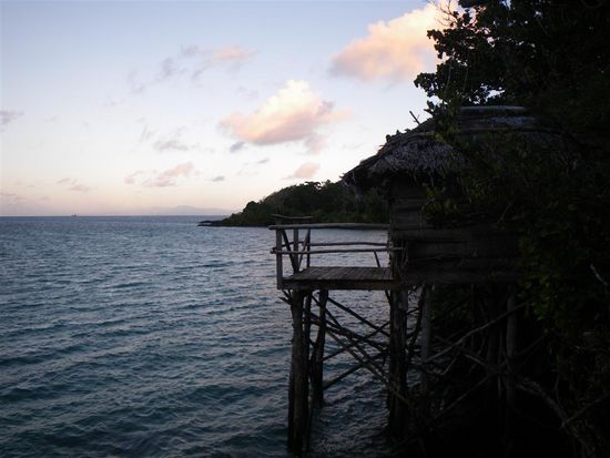 Nach zwei Tagen fuhren wir auf die Privatinsel Namua. Hier waren wir die einzigen Gaeste und fuehlten uns mehr geduldet als willkommen. Lediglich die Hunde haben sich wirklich fuer uns interessiert. Die Insel an sich ist wunderschoen, man kann auf ihre hoechste Stelle klettern und sie bei Ebbe umrunden. Beides haben wir gemacht. Zum Essen wurden wir per Trommel gerufen. Netterweise mussten wir nicht allein sein und mindestens zwei Einheimische haben uns beobachtet. Nach jeder Mahlzeit hatte man dann noch eine Stunde Audienz beim Dorfaeltesten.