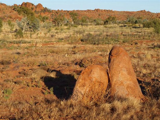 Unser Weg nach der toten Kuh fuehrte uns mit einem Uebernachtungsstop ins "rote Zentrum" Australiens.