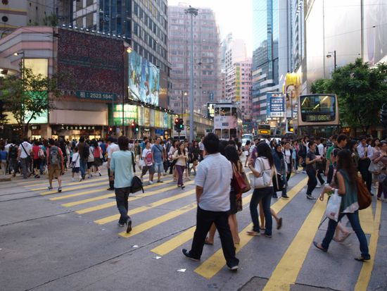 Das besiedelbare Territorium Hongkongs gehoert, nach Monaco mit rund 16000 Personen pro km², zu den am dichtesten besiedelten Gebieten der Welt, wobei die Bevoelkerungsdichte des gesamten Territoriums immer noch bei etwa 6.700 Personen pro km² liegt. 95 % der Bevoelkerung sind ethnische Chinesen.