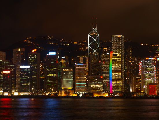 DIE SKYLINE VON HONG KONG ISLAND BEI NACHT