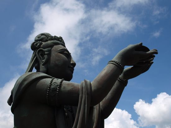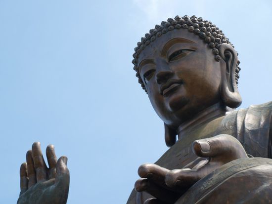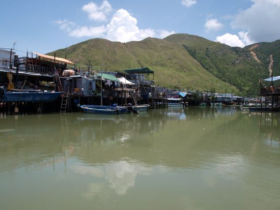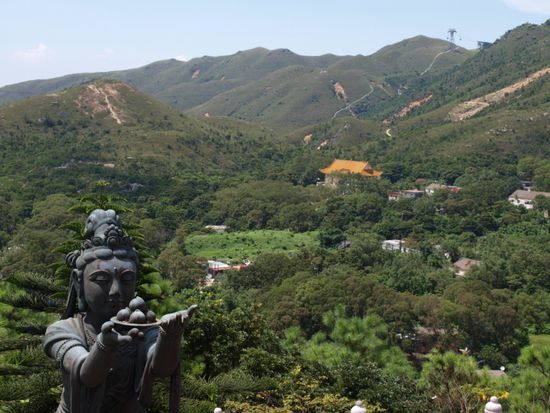 Am naechsten Morgen fuhren wir von Hong Kong Island mit der Faehre nach Lantau. Die Ueberfahrt dauert ca. 1 Stunde und man kommt in einer anderen Welt an. Auf Lantau ist das Leben eher laendlich gepraegt. Wir fuhren per Bus nach Tai O, einem traditionellen Fischerdorf mit vielen Stelzenhaeusern in den Mangroven. Fuer 2 Euro machten wir eine Bootstour durch die Mangroven und aufs offene Meer, um Delphine zu sehen. Wir hatten Glueck und konnten fuer einen Moment ein grosses rosaweisses Exemplar sehen. Weiter ging es zum Tin Tan Buddha. Er ist der groesste sitzende Buddha der Welt. Der Buddha sitzt auf einem Huegel, was den Anblick noch imposanter macht. Wir haben etwas Vergleichbares bisher nur in Thailand gesehen. Dort konnten wir einen liegenden Riesenbuddha aus Gold bestaunen. Direkt nebenan liegt das Po Lin Monastery, ein buddhistisches Kloster. Ein kleines Kloster, das aber aufgrund der prominenten Nachbarschaft immer gut besucht ist. Zurueck auf Hong Kong Island tauchten wir in das Shopping Mekka Causeway Bay ein. Laut Reisefuehrer der beste Platz dafuer in Hong Kong. Wir fanden das Angebot in den Malls in Kowloon besser und es war preislich attraktiver. Dennoch hat sich der Weg gelohnt, da es einfach nur faszinierend war, derartige Menschenmassen beim Einkaufen zu beobachten.