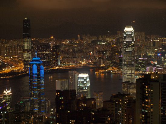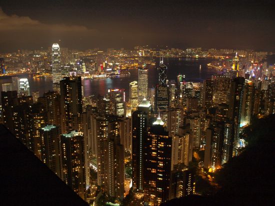 Dieser sehr abwechslungsreiche Tag endete mit einem unvergesslichen Highlight. Per Bus (die Bahn wurde leider gewartet) fuhren wir zum bekanntesten Aussichtspunkt von Hong Kong Island. Am Peak gibt es ein Shoppingcenter mit einer Aussichtsplattform. Fuer diese muss man ganze zwei Euro Eintritt bezahlen. Das Geld ist aber gut investiert, da man diesen Anblick nie vergessen wird. Wir blickten auf das naechtliche Hong Kong und waren absolut begeistert. Hong Kong hat nicht nur deshalb auf unserer Traumstadtliste momentan definitiv San Francisco ueberholt.