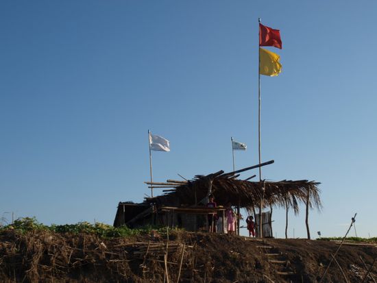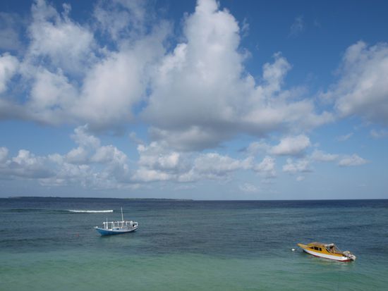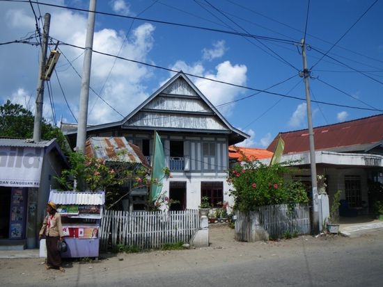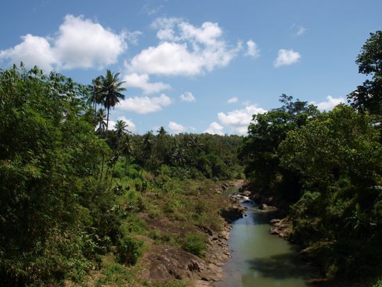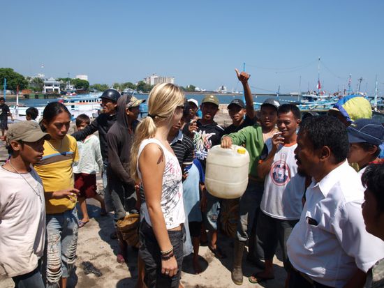 Bevor wir Makassar verliessen, besuchten wir den Fischmarkt im Hafen und hatten die Gelegenheit uns verschiedene Frachtschiffe anzusehen. Uns wurde sehr viel Aufmerksamkeit geschenkt. Sobald wir stehenblieben, bildete sich eine Menschentraube um uns. Sehr viele Touristen scheinen sich hierhin noch nicht verirrt zu haben. "Hello Mister" war das einzige Englisch, das wir zu hoeren bekamen. Weiter ging es nach einem kurzen Besuch eines traditionellen Steghauses hinaus aufs Land. Vorbei an Bananen-, Mais-, Reis- und Melonenfeldern erreichten wir einen Ort, der sein Auskommen hauptsaechlich aus der Salzgewinnung bezieht. In einem kleinen Ort schauten wir bei der Erzeugung von Palmzucker zu. Kaum waren wir dort, hatte sich auch schon das ganze Dorf um uns vesammelt. Vor der Weiterfahrt wollten die Bewohner unbedingt Bilder mit Katja machen. Spaeter schauten wir uns noch einen sehr einsam gelegenen Wasserfall an und kamen im Dunkeln in Bira, einem kleinen Strandort an der Kueste an.