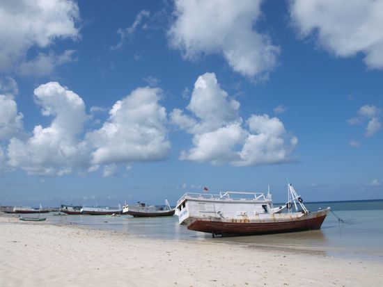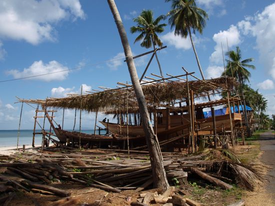 In Bira blieben wir zwei Naechte. Wir waren sofort begeistert von dem langen weissen Strand, dem kristallklaren Wasser und der entspannten Atmosphaere. Ausser einem Ausflug zu einem Ort, wo traditionelle Boote von Hand gefertigt werden, haben wir nicht viel gemacht.