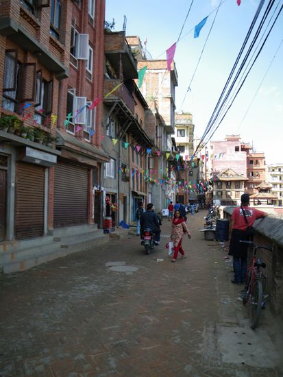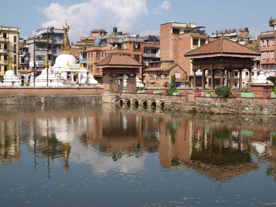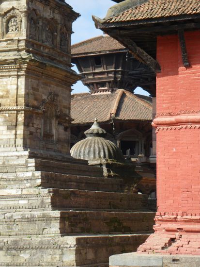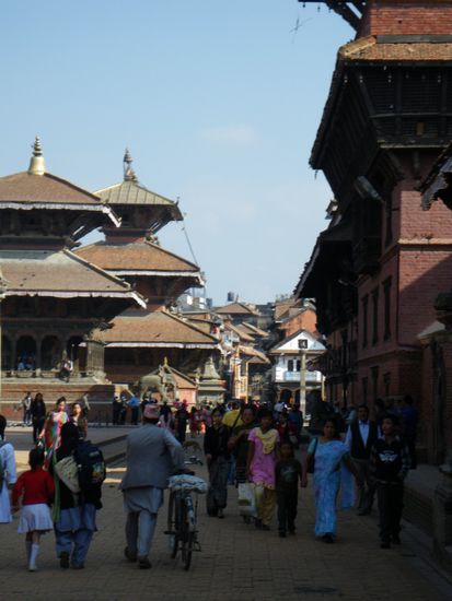 Wir machten einen eineinhalbstuendigen Spaziergang durch die Stadt und sahen dabei neben den Tempeln und Stupas viele kleine Gassen, Hoefe und Wege, die mitten durch Haeuser fuehrten, Brunnen, Badebecken und das alltaegliche Leben der Einwohner. Anders als in Indien nehmen die Nepalesen keine grosse Notiz von Besuchern, was derartige Spaziergaenge sehr angenehm macht.
