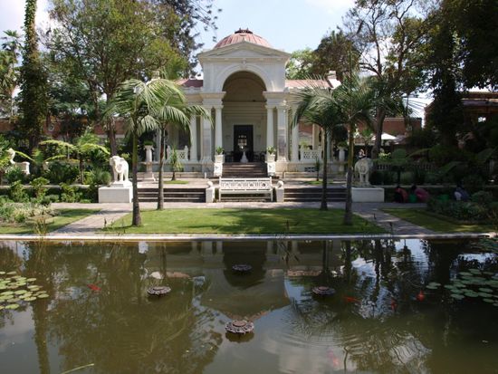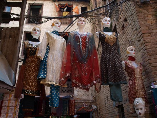 Bei der Erkundung Kathmandus entdeckten wir ein paar Oasen im hektischen Treiben der Stadt. Besonders gut hat uns der "Garden of Dreams " gefallen. An einer ueberfuellten Strasse, am Eingang zu Thamel, direkt hinter einer grossen Mauer, liegt dieser Garten, der seinem Namen alle Ehre macht. Alte restaurierte Gebaeude im Kolonialstil umgeben einen zauberhaft angelegten Garten. Unser Weg fuehrte uns weiter durch die Altstadt mit ihren unendlich vielen Geschaeften. Auch hier findet man unzaehlige Tempel und Stupas, kleine Plaetze und verkehrsfreie Wege durch kleine Gassen. Besonders faszinierend fanden wir, wie natuerlich die Bewohner mit ihrem kulturellen Erbe umgehen. Jahrhunderte alte Tempel werden als Marktstand benutzt und Waescheleinen und Stromleitungen werden an ihnen befestigt.