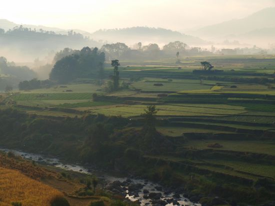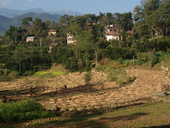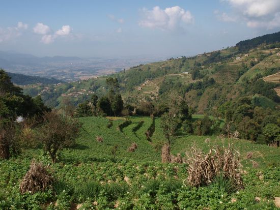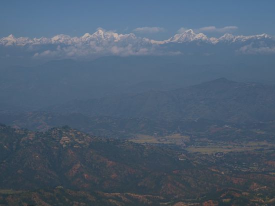 In Nargakot (2.200 m ue. N.N.) wohnten wir im empfehlenswerten "Hotel at the end of the universe". Der Ort ist fuer seine unvergesslichen Aussichten auf die Langtangkette (Himalaya) bekannt. Nachdem wir ein paar Stunden den Ausblick genossen hatten, wurden wir etwas unruhig. Schoen war es ja, so nichts zu machen und auf die Berge zu schauen. Ob wir das vier Tage lang machen wollten eine ganz andere Sache. Wir beschlossen, in den Ort zu gehen und herauszufinden, welche Trekkingmoeglichkeiten es in der Naehe gibt. Eine halbe Stunde spaeter war die Wanderung fuer die naechsten drei Tage geplant und der Traeger organisiert.