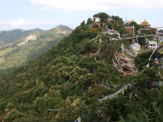 Am naechsten Morgen besuchten wir Namobuddha. Dieses tibetanische Kloster liegt auf einem Berg mit tollem Ausblick auf die Langtangkette. Das Kloster hat eine sehr besondere Atmosphaere und wir genossen die Ruhe. Namobuddha ist touristisch noch nicht erschlossen, und ausser uns waren nur eine Handvoll andere Besucher dort. Der Legende nach wurde das Kloster an genau dem Punkt gebaut, an dem Buddha eine hungernde Tigerin mit ihren Jungen fand und sie mit seinem Fleisch von seinem Koerper fuetterte, um ihr das Ueberleben zu ermoeglichen. Am Nachmittag liefen wir weiter und erreichten Dhulikhel. Dabei handelt es sich um eine kleine Stadt in der Bergregion ohne besondere Sehenswuerdigkeiten.