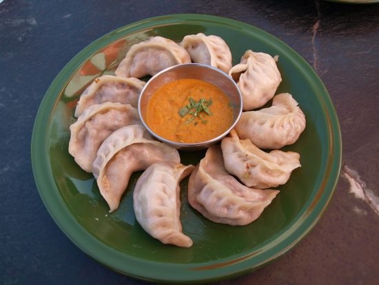 Wir machten verschiedene Spaziergaenge durch die Altstadt Bhaktapurs und genossen das gute Essen. Besonders eine tibetische Spezialitaet hat es uns angetan: Momos. Diese gefuellten Teigtaschen gibt es in verschiedenen Geschmacksrichtungen mit einer scharfen Sosse. Sie sind vergleichbar mit Raviolis oder chinesischen Dumplings.