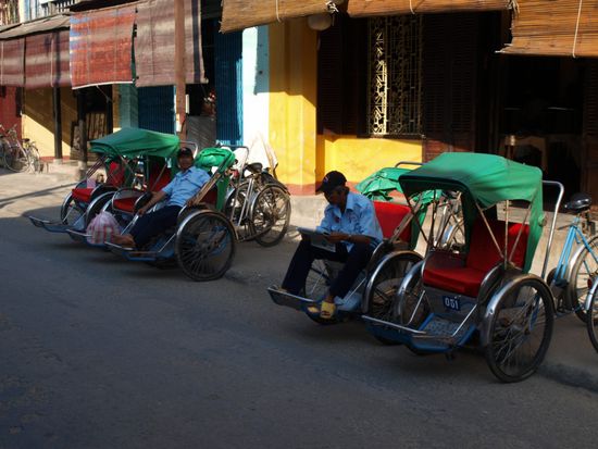 Abends mussten wir am Flughafen zwei Stunden auf unseren dreimal verschobenen Flug mit Jetstar nach Danang warten. Die Fluege der Staatsairline Vietnamairline waren alle puenktlich. Da saemtliche Fluege von Jetstar (Australien) verspaetet waren, beschlich uns hier der leise Verdacht, dass der kapitalistischen Konkurrenz das Leben hier schwer gemacht wird. Von Danang fuhren wir direkt weiter nach Hoi An und kamen dort kurz vor Mitternacht an.