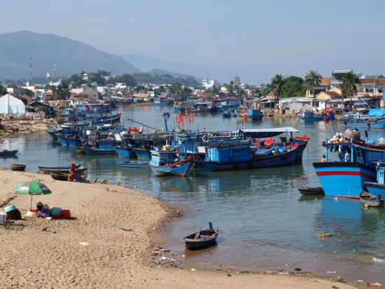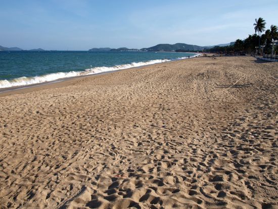 Nha Trang (350.000 Einwohner) ist das touristische Zentrum Vietnams. Unzaehlige, zum Teil sehr luxorioese Hotels saeumen den kilometerlangen Sandstrand und mindestens genausoviele Hotelanlagen befinden sich im Bau. Ein Grossteil der Touristen ist russischer Herkunft und sie finden hier Werbung und Speisekarten auf Russisch. Wir waren von dieser Atmosphaere eher erschreckt als begeistert und froh, Nha Trang nur als Zwischenstop auf dem Weg in die Berge eingeplant zu haben.