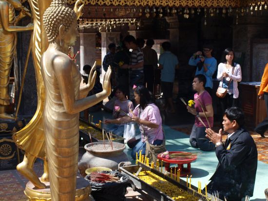 Die Moenche vieler Tempel sind vor allem nachmittags gerne zu Gespraechen bereit. Auch Touristen koennen sich mit Fragen nach dem Alltag und Leben der Moenche an sie wenden. Sie haben so Gelegenheit, ihr Englisch zu pflegen und zu erweitern.