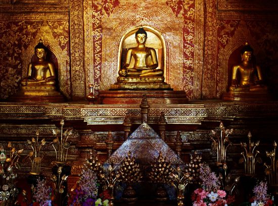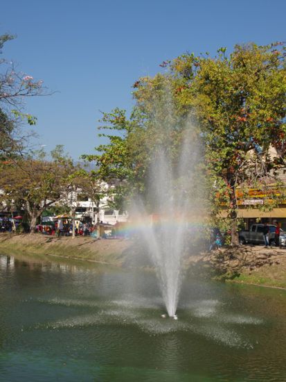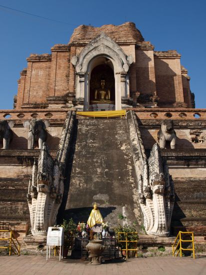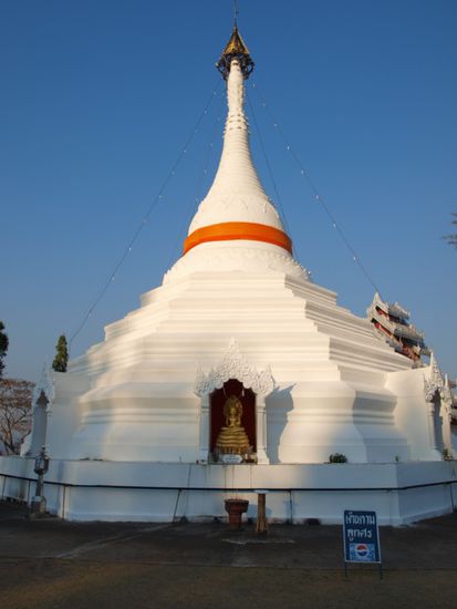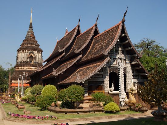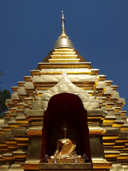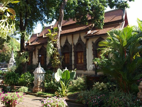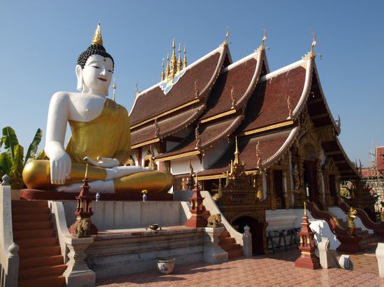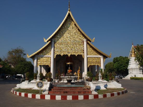 Chiang Mai hat 148.000 Einwohnern und ist die groesste und kulturell wichtigste Stadt in Nordthailand. Die Stadt liegt in einem Flusstal zu Fuessen des Berges Doi Pui (1.685 m). Sie ist das wirtschaftliche und kulturelle Zentrum des Nordens. Chiang Mai hat insgesamt 200 buddhistische Tempel, viele davon liegen in der Altstadt. Wenn man durch die Altstadt laeuft, erscheint es einem, als waere jedes zweite Gebaeude ein Tempel. Sie wird von einem Kanal in einem Viereck eingeschlossen und es stehen noch Reste der alten Stadtmauer.