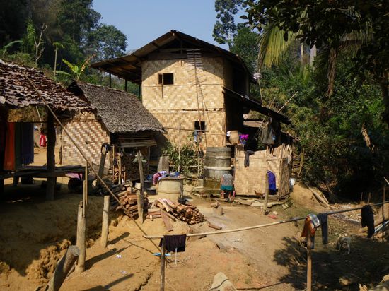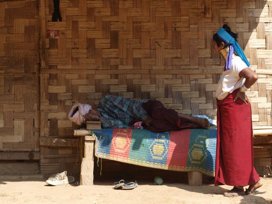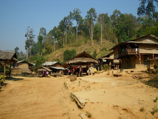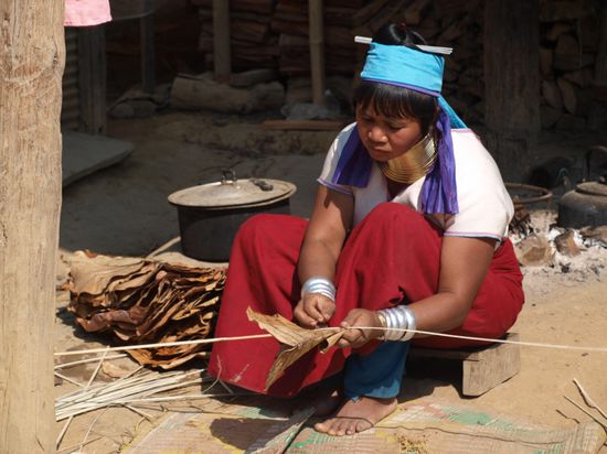 Wir fanden es sehr interessant in diesem Dorf den Alltag der Padaungs beobachten zu koennen. Man kann Padaungs auch in anderen Orten im Norden sehen. Dort werden sie aber eher ausgestellt und leben nicht in einer Dorfgemeinschaft mit ihren Familien.