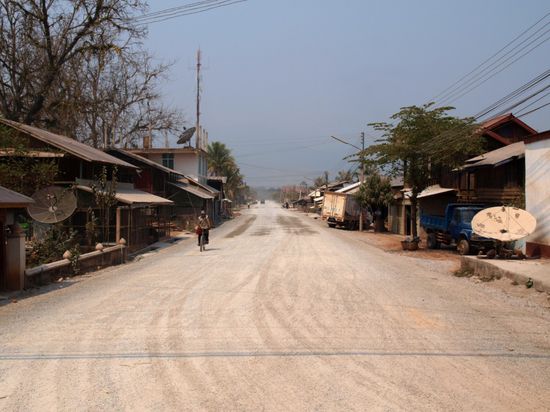 Die meisten Reisenden fahren nach dem Grenzuebertritt direkt per Boot weiter nach Luang Prabang. Da der Mekong derzeit aber nur sehr wenig Wasser hat, ist dies zur Zeit nicht moeglich. Die Trockenzeit hat fuer ein stetiges Sinken des Wasserstandes gesorgt, und zudem haben die Chinesen einige Staudaemme geschlossen. Dies hat fuer Laos, Thailand und Vietnam drastische Folgen, da die Landbevoelkerung auf, mit und auch vom Fluss lebt. Lediglich dort koennen sie in der Trockenzeit Gemuese anbauen und Reis ernten. Zudem ist der Fluss ein wichtiger Verkehrsweg und ersetzt vor allem in Laos und Vietnam Strassen. Fuer uns war es kein Problem, da wir sowieso erst weiter in den Norden fahren wollten. Wir sind mit einem Minibus ins drei Stunden entfernte Luang Namtha gefahren.