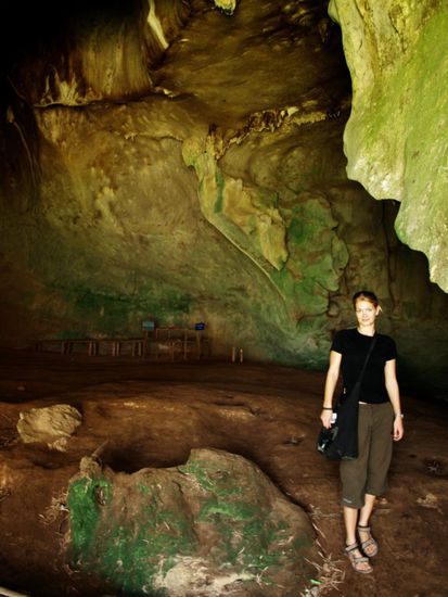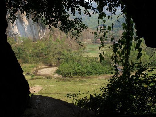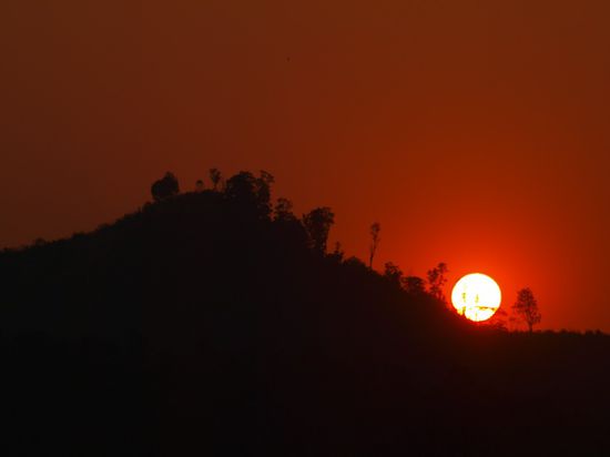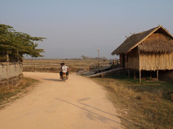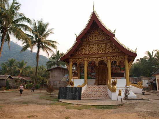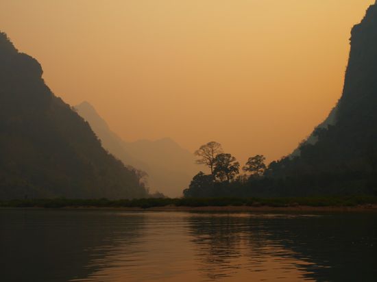 Wir blieben in Nong Khiaw fuer drei Naechte und wohnten in den "Golden Sunset Bungalows". Wir genossen das leckere laotische Essen und die Aussicht auf den Fluss. Der Name unseres Hotels hielt, was er versprach und die Sonnenuntergaenge waren wunderschoen. Trotz einer stattlichen Anzahl von Guesthouses und Restaurant ist der Ort eher untouristisch und es leben dort mehr Laoten als Touristen. Wir haben das Umland mit dem Mountainbike erkundet und dabei eine Hoehle, mehrere Doerfer, Reisfelder und zwei Kloester gesehen. Sobald man Nong Khiaw verlaesst, sieht man keine weiteren Farangs ("Langnasen"), wie Weisse hier genannt werden, mehr und kann das einfache Leben auf dem Land erleben.