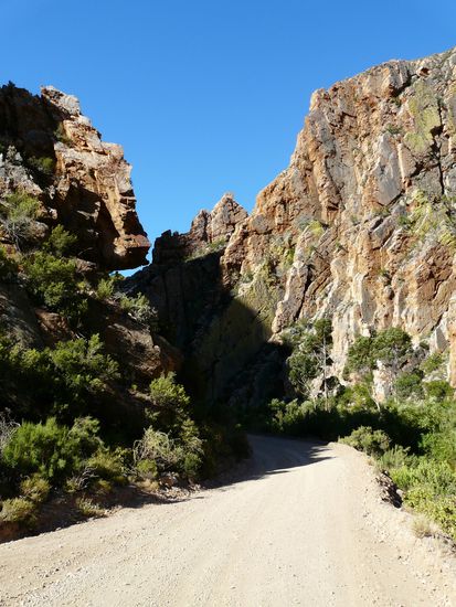 Dann haben wir mal wieder die Gelaendetauglichkeit unseres Corsas auf eine extrem harte Probe gestellt. Wir sind ueber eine unbefestigte Schotterpiste auf den Swartbergpass gefahren. Die Tour ist Leuten mit Hoehenangst definitiv nicht zu empfehlen. Die Ausblicke vom Pass sind aber definitv den Weg wert. Unterwegs haben wir Dominik den Foerster aus Freiburg wiedergetroffen. Wir haben ihn in Plettenberg kennengelernt und uns sehr gefreut ihn wiederzusehen. Gemeinsam sind wir dann Richtung Prins Albert vom Pass gefahren. Anschliessend ging es durch eine nicht enden wollende Schlucht mit hohen rot schimmernden Berg zurueck nach Oudtshoorn. Abends haben wir dann mit Dominik dem Volkssport der Suedafrikaner gefroent. Es gab Braai, auf Deutsch: wir haben gegrillt. Hier gibt es ueberall Grillplaetze, sogar auf Rasthoefen.