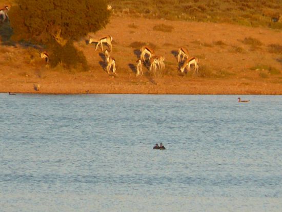 Am folgenden Tag haben wir uns mit der Planung unserer Namibiareise befasst und geschwitzt. Es war unglaublich heiss. Laut Wetterbericht nur 27 Grad, laut Thermometer waren es 45 Grad. Abends waren wir auf einer Gamelodge (Safaripark) etwas essen. Von der Terasse aus konnte man viele Tiere beobachten. Unter anderem haben wir vier Flusspferde gesehen!