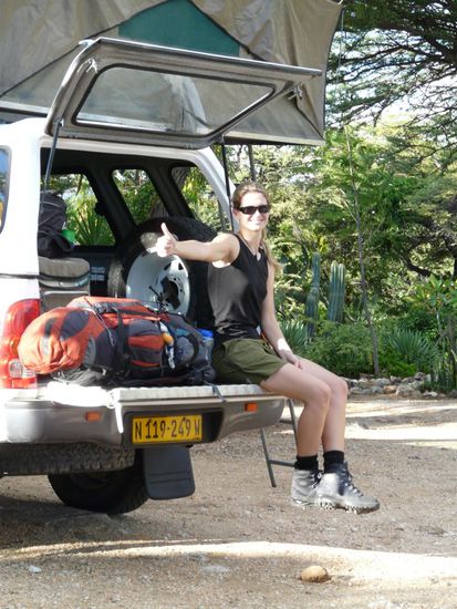 Nach zwei Naechten in Windhoek, haben wir unseren Gelaendewagen mit Zeltdach uebernommen. Unser erstes Ziel war eine Gaestefarm in der Naehe von Otjiwarongo. Die Farm heisst Weavers Rock und gehoert dem Grafen zu Bentheim. Marc und seine Frau Nadja, sowie Nadjas Mutter Sabine haben uns mit offenen Armen empfangen. Wir haben die Zeit mit ihnen sehr genossen. Der Campingplatz war super und die Aussicht vom Hausberg grandios. Die endlose Weite Namibias konnten wir hier zum ersten Mal richtig bestaunen. Aus einer urspruenglich geplanten Nacht wurden direkt zwei Naechte. Die Abende haben wir mit unseren Gastgebern und deren Verwandten aus Windhoek am Lagerfeuer verbracht. Ein Tagesausflug ging zum Waterbergplateau. Dort sind wir auf einen Aussichtspunkt geklettert und haben wieder die endlose Landschaft bestaunt. Am Fusse des Berges war sogar ein deutscher Friedhof. Am zweiten Abend haben wir einen Sundownerdrive durch das Anwesen gemacht.